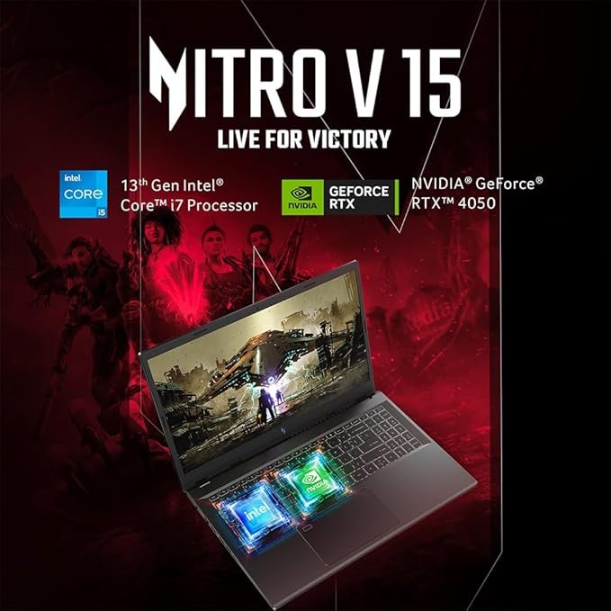 Acer Nitro V 15, Intel Core i7-13th Gen 13620H Processor, NVIDIA GeForce RTX 4050-6GB GDDR6(16GB DDR5, 512GB) IPS FHD, 15.6″/39.6cm, 165Hz,Win 11 Home,Obsidian Black, 2.1KG, ANV15-51, Gaming Laptop