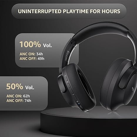• Battery Run Time: 100% Volume: 49h 40m (ANC Off) | 34h 24m (ANC On) & 50% Volume: 74h 20m (ANC Off) | 62h 30m (ANC On)