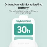 • COMPACT SIZE, YET POWERFUL – The battery lasts for up to 30 hours on a single charge, keeping up with your long playlist of songs, podcasts or social media videos throughout your day.
