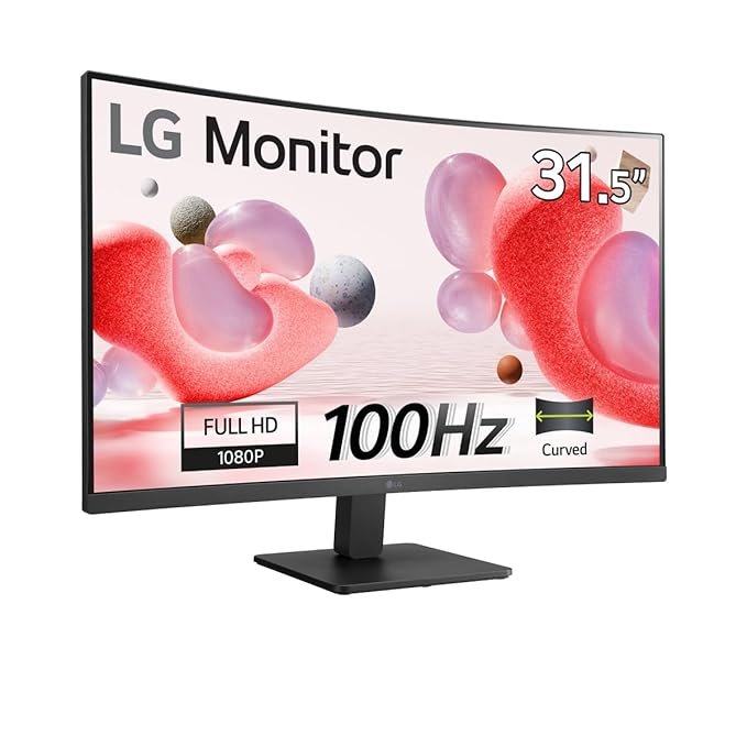 LG 32MR50C (32 Inch) Full HD Curved Monitor (1920 x 1080) with 100Hz, 5ms, VA Panel, AMD FreeSyncâ„¢, HDMI X 2, VGA, Headphone Out, Tilt, Reader Mode, Flicker Safe, 3-Side Virtually Borderless – Black